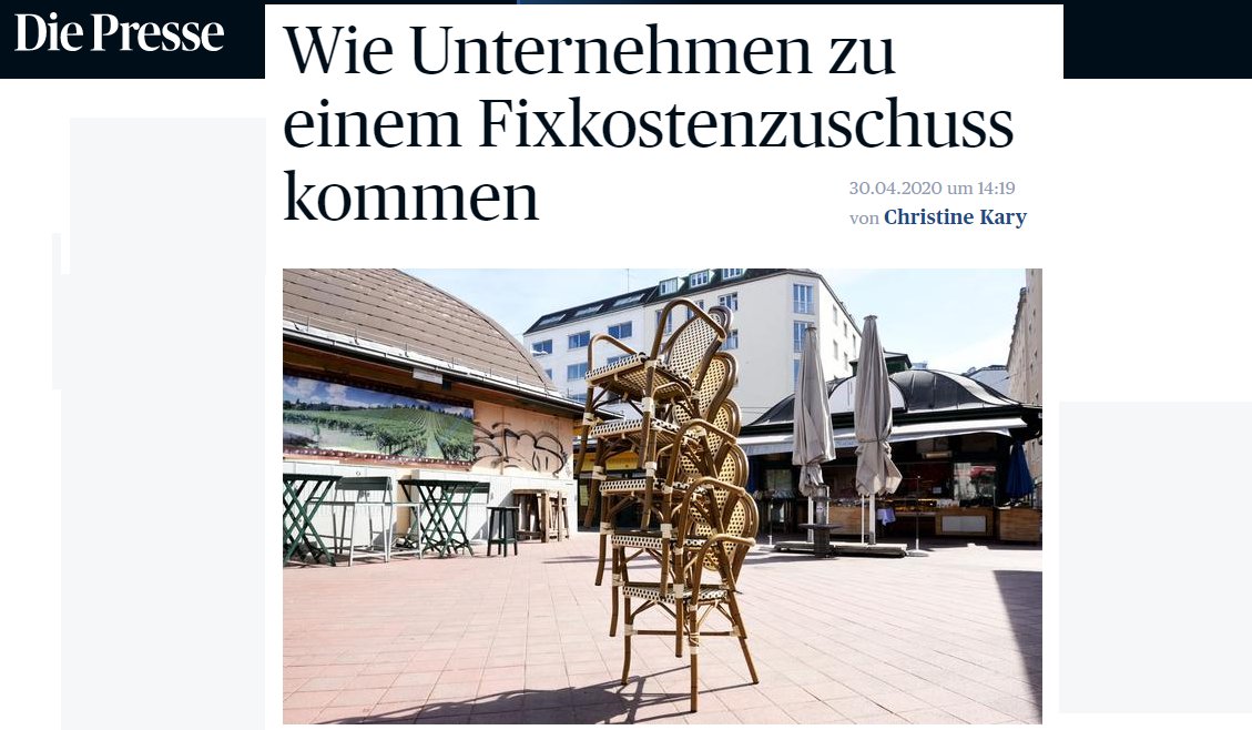Das Unternehmen muss seine Geschäftsleitung und die Betriebsstätte in Österreich haben, und es müssen bei der operativen Tätigkeit hier Fixkosten angefallen sein. Weiters muss es sich um ein Unternehmen handeln, das vor der Krise wirtschaftlich gesund war. Zudem müssen „sämtliche zumutbaren Maßnahmen“ gesetzt werden, „um die Fixkosten zu reduzieren und die Arbeitsplätze in Österreich zu erhalten“, wie es auf der Homepage des Finanzministeriums heißt. Was das konkret für die Firmen heißt, ist einer der Punkte, zu denen eine Klarstellung nötig wäre. Dezidiert von der Ersatzleistung ausgeschlossen sind Unternehmen, die Ende 2019 mehr als 250 Mitarbeiter beschäftigt und in der Krise Arbeitnehmer gekündigt haben, statt die Kurzarbeit in Anspruch zu nehmen. Auch für den gesamten Finanz- und Versicherungsbereich soll die Regelung nicht gelten.